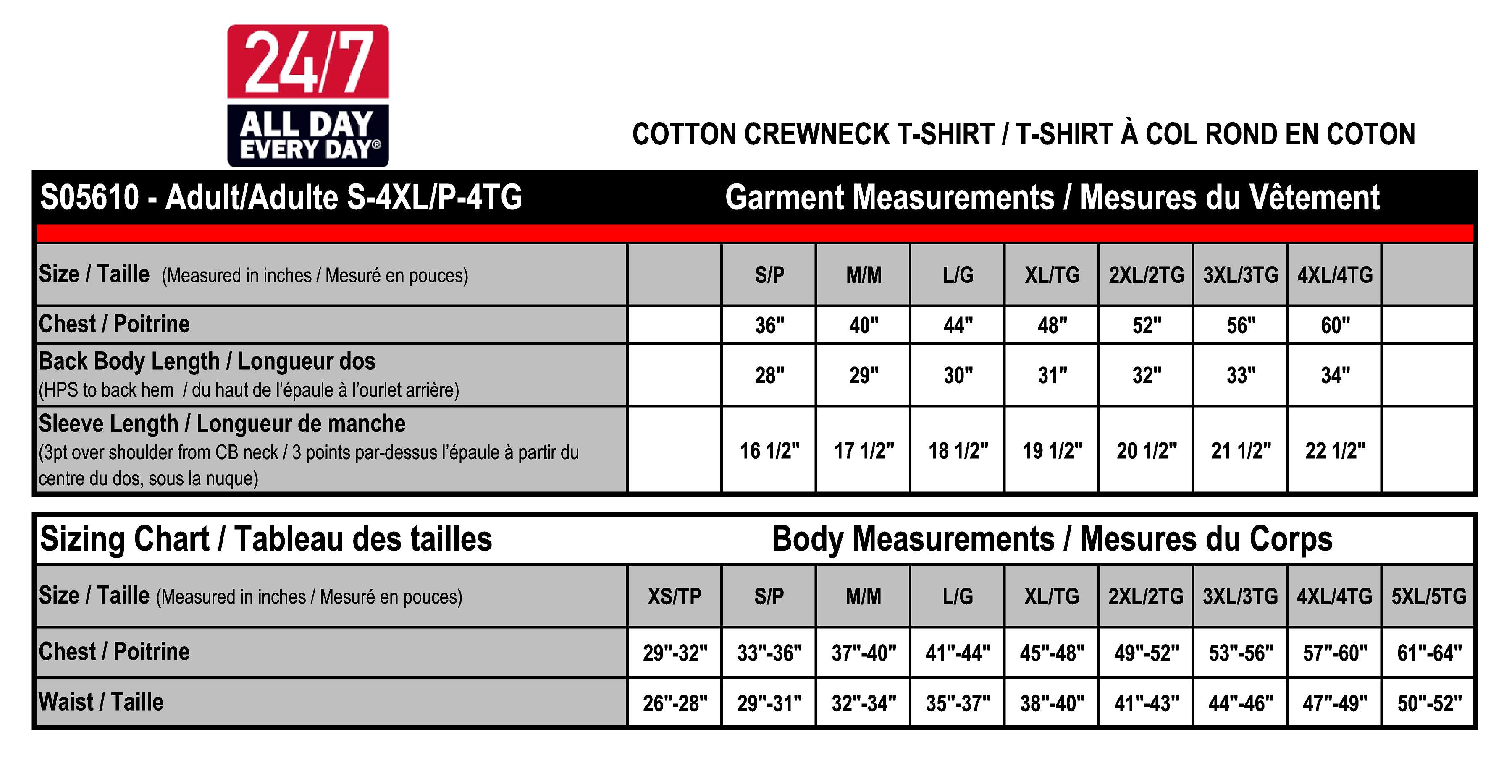 Grille des Tailles